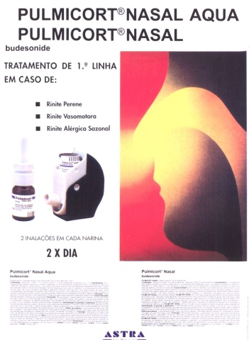 PULMICORT®NASAL AQUA PULMICORT®NASAL budesonide TRATAMENTO DE Lº LINHA EM CASO DE: I Rinite Perene I Rinne Vasomotora I Rinite Alérgico Sozonol ' _I'IIILIIO Ç 2 INALAÇÓES EM CADA NARINA 2XDIA Pulmicort' Nasal Aqua dddddddddd __...»— ASTRA: