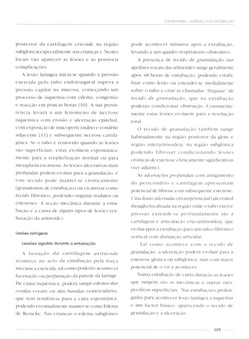 posterior da cartilagem cricoidc na região pode acumcccr minutos após a cxtubaçãu.