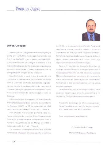 Internato do Especialidade de ORL. é o constants Presidente do Colégio de Otorrinoloringologno