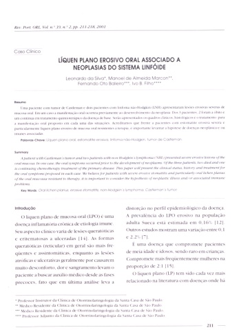 Key Wows: Oral lichen planus. eroswe slomcrms. non-Hodgkm 5 lymphoma, C05319an 5 rumor