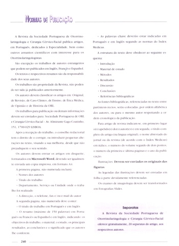 laringologia e Cirurgia (Zérvico-Facial publica artigos. Português e em Inglês segundo as normas do Index