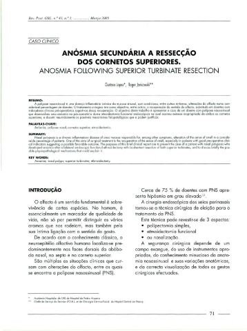 siderável percentagem de doentes. O tratamento cirúrgico tem como objectivo, entre outros, o recuperação do sentido do olfocto, sobretudo em doentes com