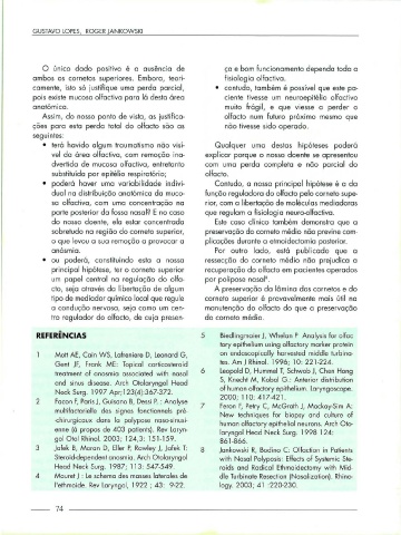 3 Jafek B, Moran D, Eller P, Rowley J, Jafek T: 8 Jankowski R, Bodino C: Olfaction in Patients