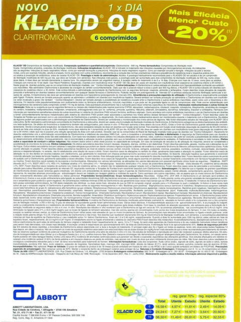 ca relativa à prescrição de antibióticos. antes de rece~tar KLACID 00 Posologli!l e modo de admlnlstri~ç.ão: Adultos. A posok:>gla habitualmente recomendada para o KLACID® 00 ern adultos é de um comprimido