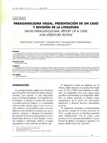 tado anatomopatológico, Iras la intervención realizada par nuestro Servicio, fue informado como paraganglioma vagai. Es fundamental una rehabilitación