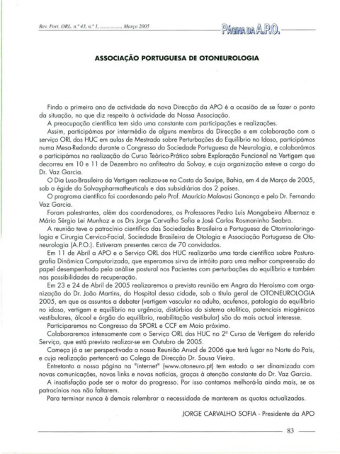 Entretanto a nossa página na "internet" (www.otoneuro.pt) tem estado a ser dinamizada com