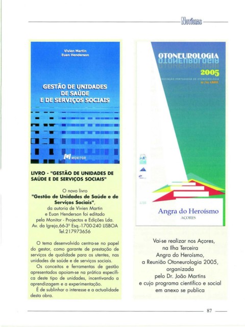 unidades de saúde e de serviços sociais. a Reunião Otoneurologia 2005,