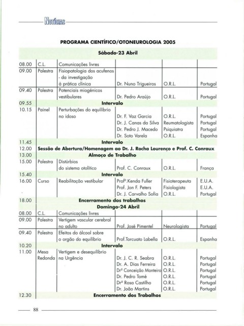 PROGRAMA CIENTÍFICO/OTONEUROLOGIA 2005