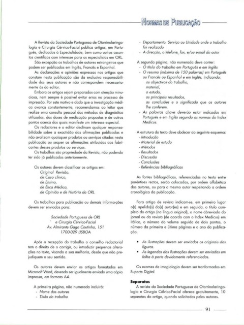 A primeira página, não numerada incluirá: A revista da Sociedade Portuguesa de Otorrinolaringo-