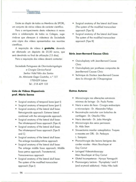 Existe ao dispôr de todos os Membros da SPORL, • Surgical anatomy of the lateral skull base: