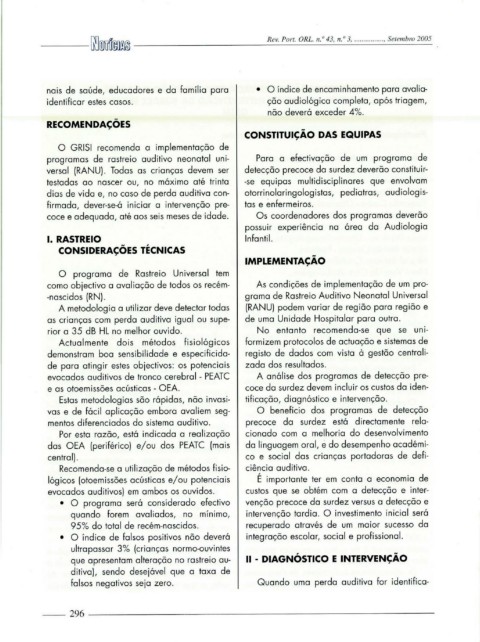 versal (RANU). Todas as crianças devem ser detecção precoce da surdez deverão constituir-