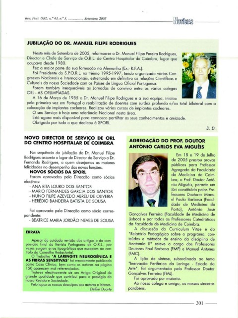 Neste mês de Setembro de 2005, reformou-se o Dr. Manuel Filipe Pereira Rodrigues,