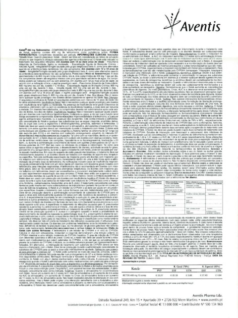 assegurada quando o Ketek é administrado com outros medicamentos com potenc&al para protongar Apresenteçio e preços