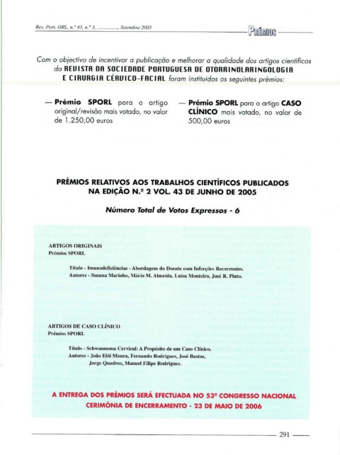 - Prémio SPORL para o artigo - Prémio SPORL para o artigo CASO