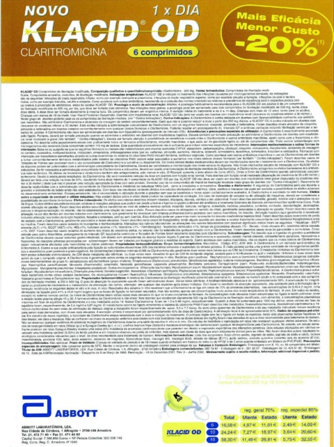 KLACIO• 00 Comprimidos de libertaç~o modificada. Composlçio qualltoUve a quantltetlvalcomprlmJdo; Claritromicina- SOO mg. Forma fillnnac~utlca : Compdmtdos de libertação mod'l-