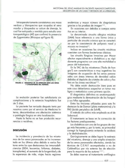 de Zygomicelos (Rhizopus sp-Figuro III}. (SAM} hoce referencio o una forma única y