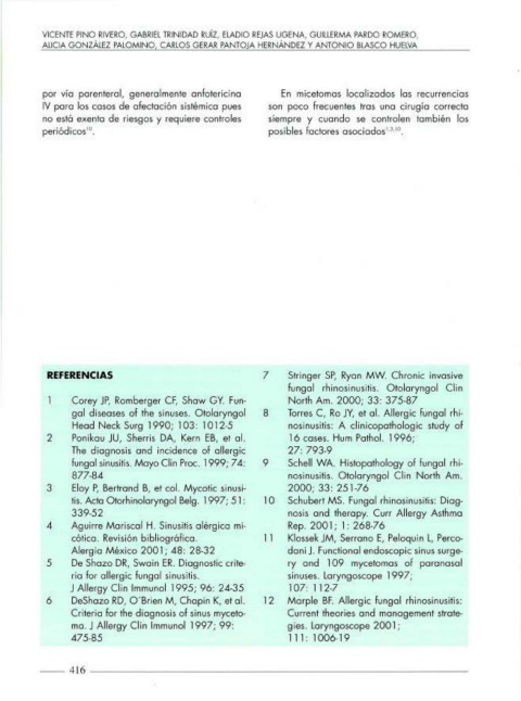 5 De Shazo DR, Swoin ER. Díognostic cri te· ry and 109 mycetomos of poronasol