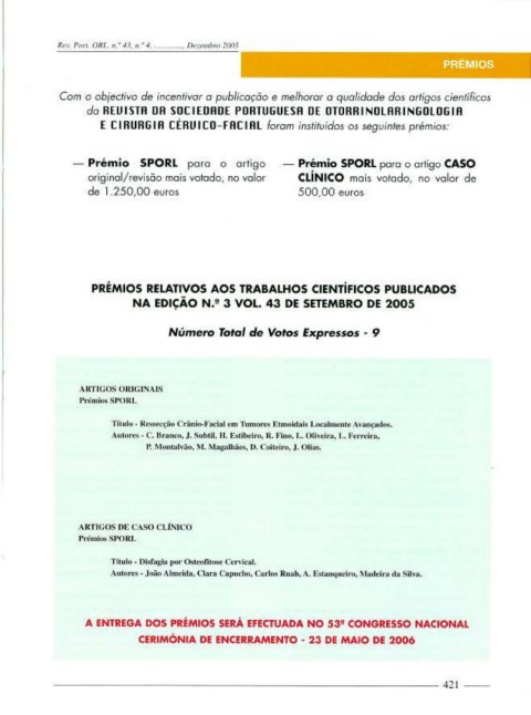 - Prémio SPORL poro o artigo - Prémio SPORL paro o artigo CASO