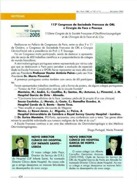 de Outubro, o Congresso do Sociedade Fron-ceso de ORL e Cirurgia