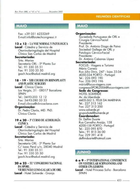 E-mail; info@biotechcongressi. it Sociedade Portuguesa de ORL e