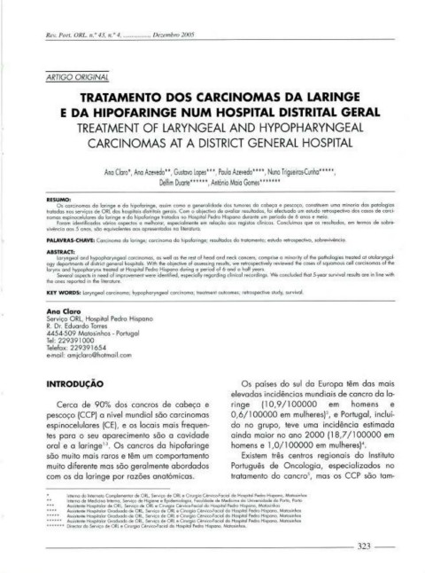 E DA HIPOFARINGE NUM HOSPITAL DISTRITAL GERAL