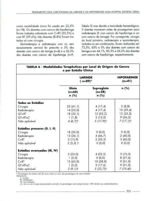 T~ATANIENTO DOS CARCINOMAS DA LARINGE E DA HIPOfARINGE NUM HOSPITAL DISTRITAl GERAL