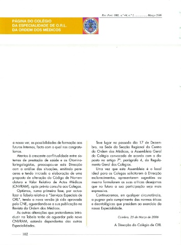 Especialidades. A Direcção do Colégio de ORL