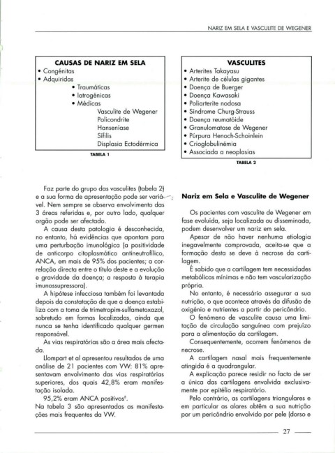 NARIZ EM SELA E VASCULITE DE WEGENER