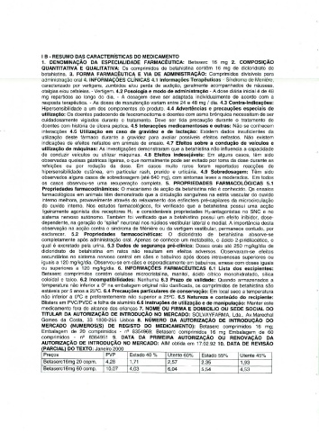 MERCADO (NUMEROS(S) DE REGISTO DO MEDICAMENTO): Betaserc comprimidos 16 mg;