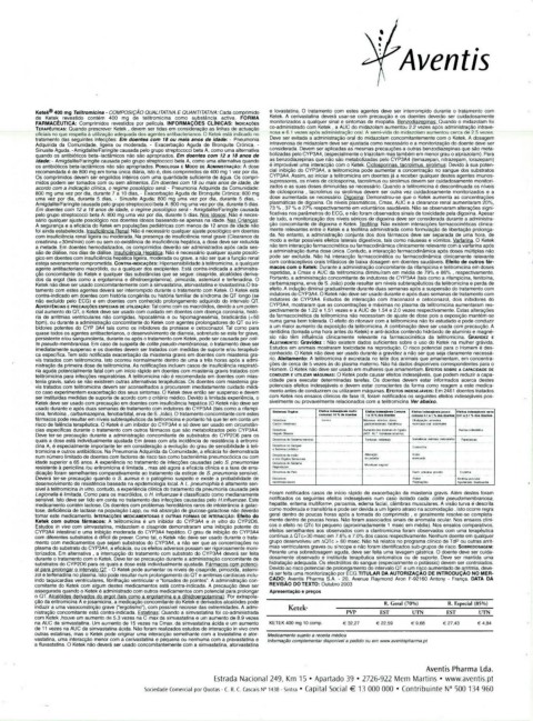 assegurada .Quando? Ketek é administrado com outros medicamentos com potencial para prolongar Apresentaçio e preços