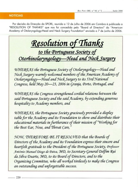 rttV.JfêE/l(,~JlS tlie Portuguese Society of Otofaryngofogy-!}{eaá aná