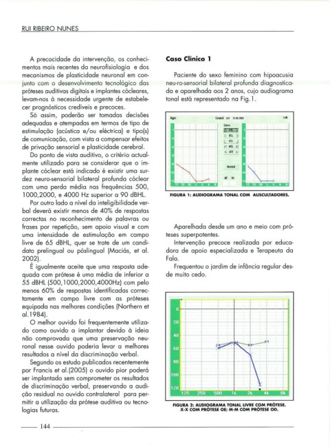 próteses auditivas digitais e implantes cócleares, da e aparelhada aos 2 anos, cujo audiograma