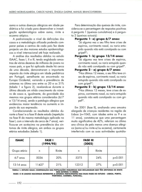 asma e outras doenças alérgicas em idade pe- Para determinação das queixas de rinite, con-