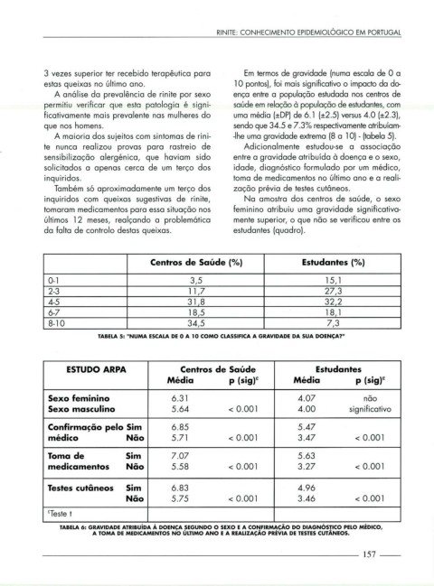 sensibilização alergénica, que haviam sido entre a gravidade atribuída à doença e o sexo,