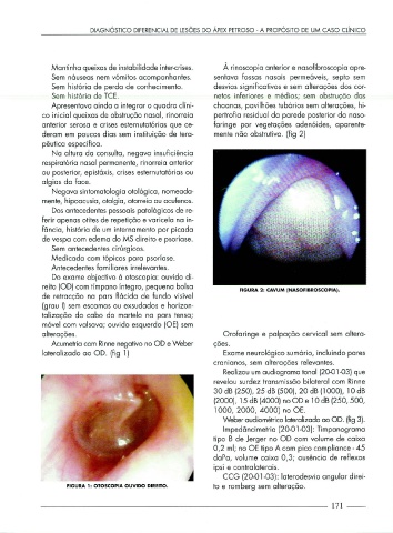 Mantinha queixas de instabilidade inter-crises. À rinoscopia anterior e nasofibroscopia apre-