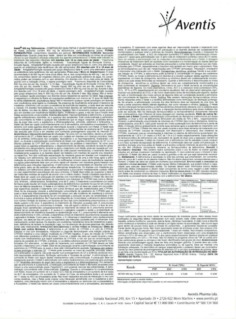 assegurada quando o Ketek é administrado com outros medicamentos com potencial para prolongar Apresentaçio e preços