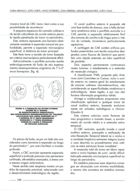 te rápida penetração do tumor no pericôndrio. dos tumores da concha e do tragus para o inte-