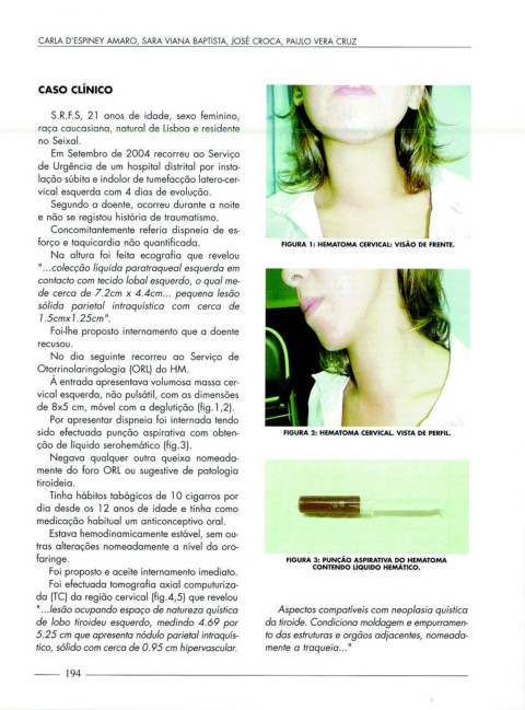 sido efectuada punção aspirativo com obten- FIGURA 2: HEMATOMA CERVICAL. VISTA DE PERFIL.