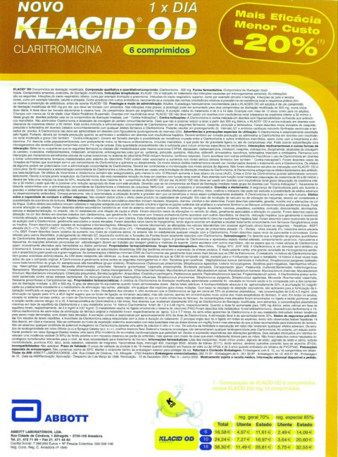 ca re4ativa à prescrição de antibióticos, antes de rocetlar KLACID 00 Posologia e modo de administração: Adultos A po~1a habitualmente recomendada para o KLACIDSI 00 em adultos é de um compnmido