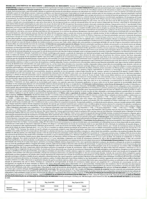 redução na taxa de crescimento. Existem poucos dados disponíveis acerca da segurança e eficácia de Nasomet na população pediátrica entre os 3 e os 5 anos de idade, não podendo ser estabelecido um intervalo