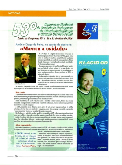 do congresso, preconizando « oindo mais quolidode» no prótiw ct~nico, sem «trioololismos mediáticos», mos « com mais