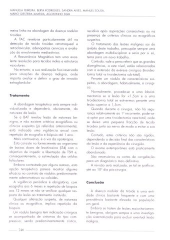 005 12 meses se não se verificar qualquer res- A doença nodular do tiróide é umo enti-