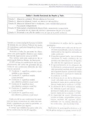 Table I : Escola funcional do Hoohn y Yohr
