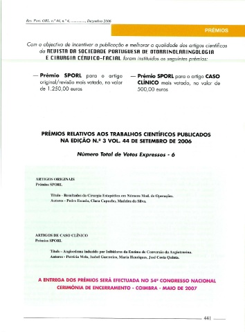 - Prémio SPORL para o artigo - Prémio SPORL para o artigo CASO