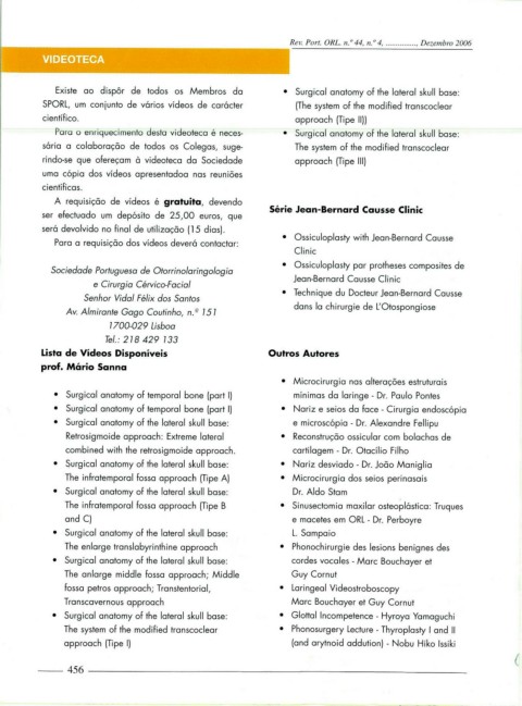 Existe ao dispôr de todos os Membros da • Surgicol onotomy of the lateral skull base:
