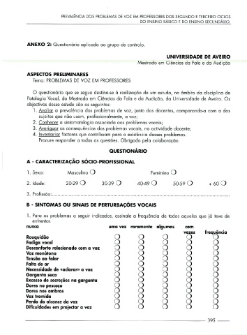 P atologia Vocal, do Mestrado em Ciências da Fala e da Audição, da Universidade de Aveiro. Os