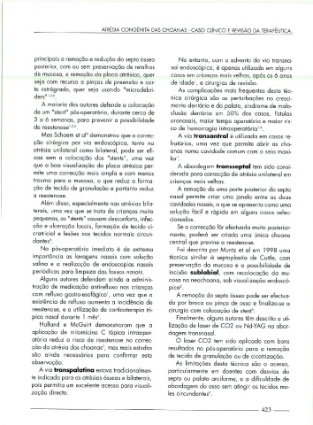 ção da atrésia das choanas , mas mais estudos resultados no pós-operatório para a remoção