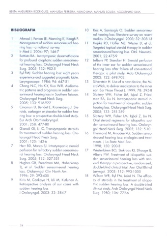 Byl FMI. Sudden hearing loss: eight years therapy: a pilot study. Acto Otolaryngol