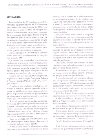 COMPLICAÇÓES DA CIRURGIA CRANIOFACIAL NA ABORDAGEM DE TUMORES DA BASE ANTERIOR 00 CRÃNIO