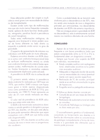 O BOR é de transmissão autossômica domi- ' Consulta de Nefrologia ou Urologia umo